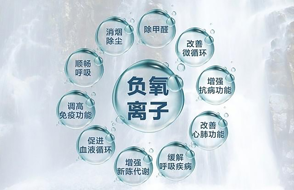 第三個科技呢就是森林負(fù)氧,大家出去旅游出去玩的時候很多人都喜歡去爬山、或者是去森林里野餐對吧,因為那邊的空氣非常的清新,我們呼吸起來也特別的順暢,就是因為那邊負(fù)氧離子特別多,而且根據(jù)調(diào)查顯示,長壽村就是因為負(fù)氧離子多所以才長壽。那我們森林家里面就配有負(fù)氧離子發(fā)生器,就是讓我們把森林搬回了家,相當(dāng)于有了一片室內(nèi)的森林,有了一個天然的氧吧。當(dāng)負(fù)氧離子發(fā)生器開啟的時候,它釋放出來的負(fù)氧離子會和空氣中的正離子結(jié)合,起到一個降低粉塵的作用。同時負(fù)氧離子也被稱為空氣維生素,對我們的身體也是有非常大的好處的!