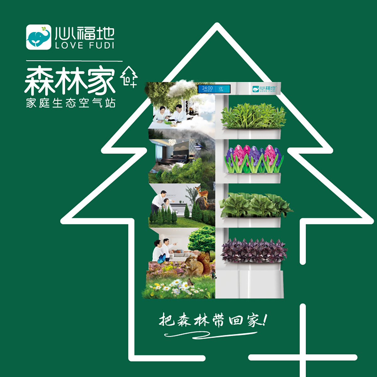 所以一臺森林家就等于一個家庭生態(tài)空氣站。搬新家,住新房,首選心福地森林家,讓我們把森林帶回家!